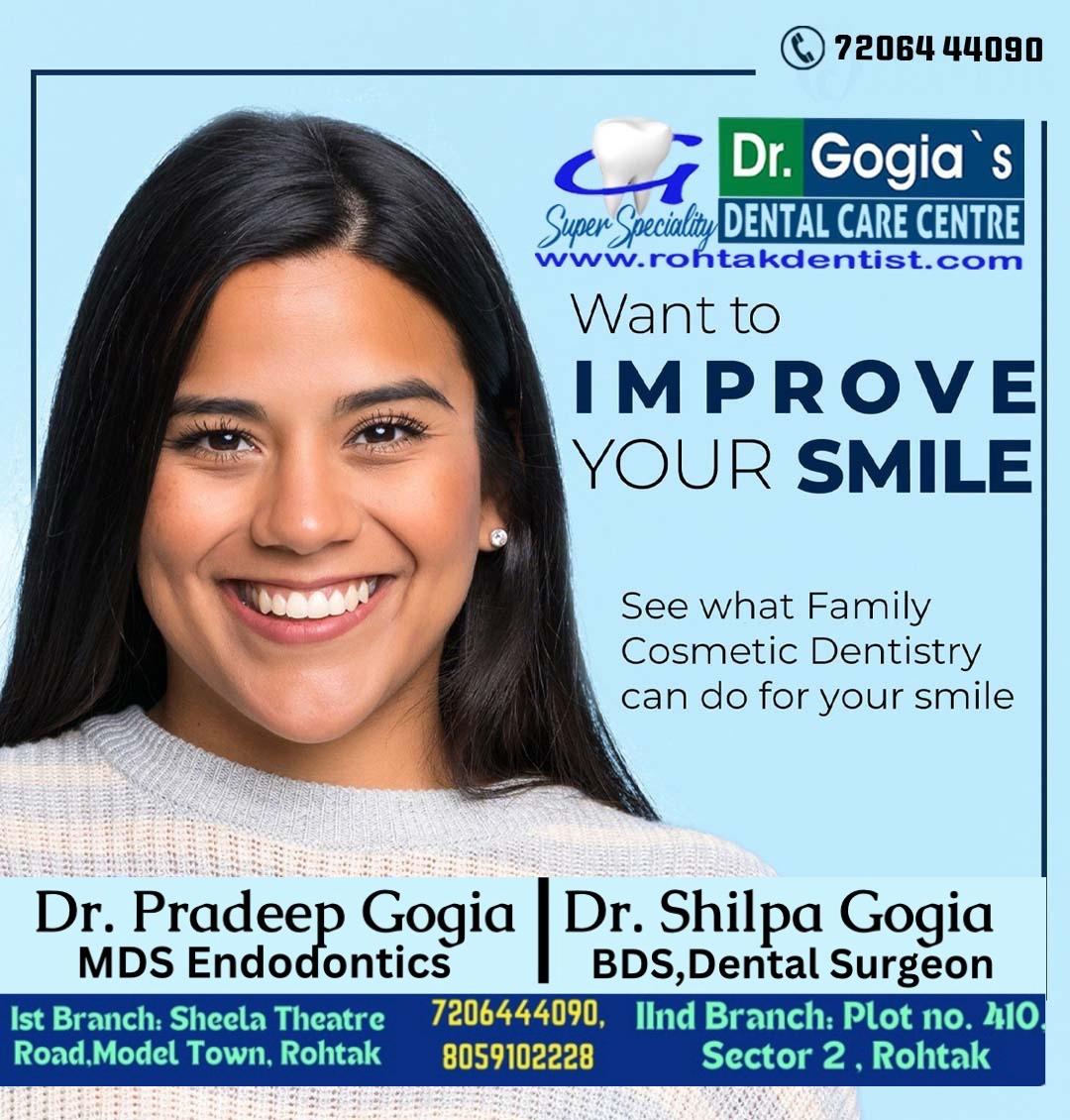#ImproveYourSmile #SmileWithConfidence #DrGogiaDentalCare #GogiaSuperSpecialtyDental #BestDentistInRohtak #DentalCareRohtak #HealthySmile #SmileMakeover #CosmeticDentistry #TeethWhiteningRohtak #VeneersInRohtak #BracesAndAligners #DentalImplantsRohtak #CrownsAndBridges #GumContouring #PainlessDentalCare #DentalClinicRohtak #OralCare #SmileTransformation #ZoomTeethWhitening #DentalHealthTips #SmileGoals #ConfidentSmile #OralHygiene #SmileRestoration #PerfectSmile #StraightTeeth #WhiteTeeth #StrongSmile #SmileDesign #AdvancedDentalCare #SmileBright #ToothCare #LoveYourSmile #DentalWellness #DentalHygieneTips #SmileImprovement #SmileDoctor #TeethGoals #BeautifulSmile #CavityFreeSmile #SmileBoost #HealthyGums #DentalTreatmentRohtak #NaturalSmile #SmileUpgrade #ProDentalCare #ShinySmile #HappySmile #RohtakDentist