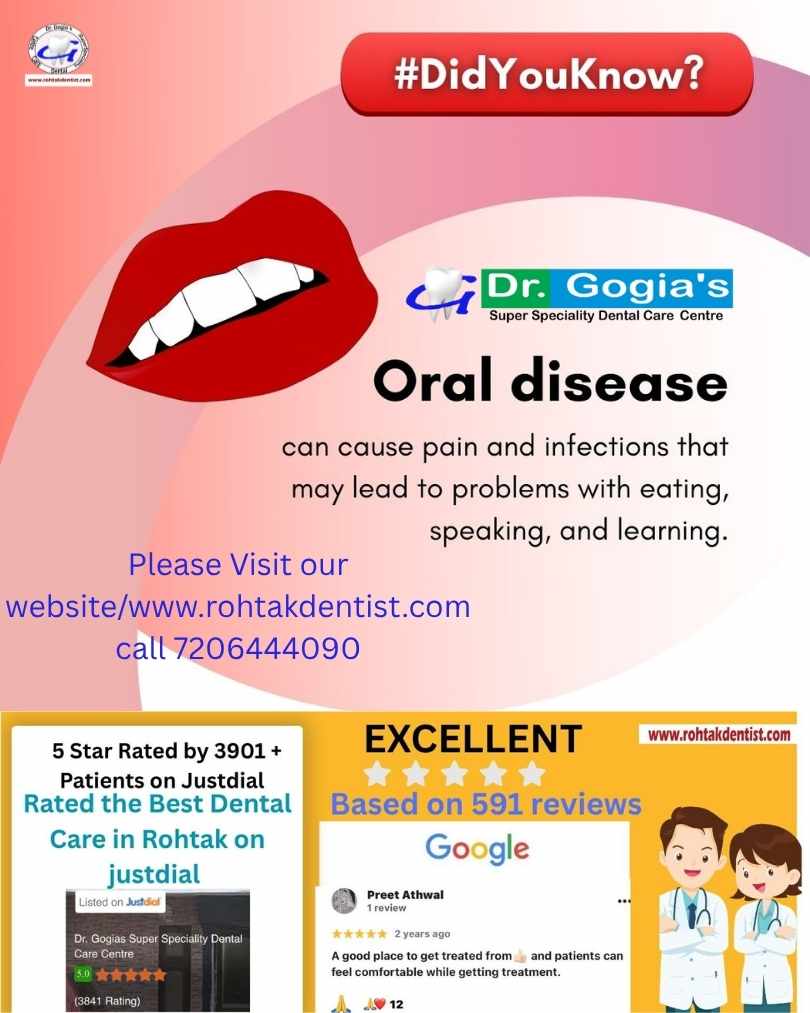 पेशेवर जांच और उपचार के लिए डॉ. गोगिया डेंटल क्लिनिक रोहतक जाएँ।